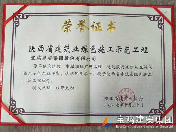 2018年1月26日在西安召開(kāi)了陜西省建筑業(yè)協(xié)會(huì)第六屆二次理事會(huì)議,我公司承建的科研生產(chǎn)試驗(yàn)大樓、寶雞蟠龍新居SF05標(biāo)段,高新五路明星佳苑、新建路市場(chǎng)改造項(xiàng)目(民豐國(guó)際)、中聯(lián)國(guó)際廣場(chǎng)項(xiàng)目,在2017年度綠色施工評(píng)審過(guò)程中,達(dá)到優(yōu)良水平,被授予陜西省建筑業(yè)綠色施工示范工程稱(chēng)號(hào)。 此次榮譽(yù)的獲得離不開(kāi)公司各職能部室的指導(dǎo)與項(xiàng)目部的辛勤努力,項(xiàng)目部能緊跟建筑行業(yè)發(fā)展的大方向,不斷加強(qiáng)綠色施工過(guò)程管理的學(xué)習(xí),在施工過(guò)程中圍繞著“四節(jié)一環(huán)保”理念,堅(jiān)持走節(jié)能降耗,增效降本,可持續(xù)發(fā)展的施工道路,最終取得了可喜的成績(jī)。 公司綠色施工整體水平近年來(lái)得到顯著提高,希望各項(xiàng)目部在2018年的施工過(guò)程中,以文明施工,綠色施工標(biāo)準(zhǔn)嚴(yán)格要求自己,力爭(zhēng)在施工管理方面取得更高的成績(jī)。