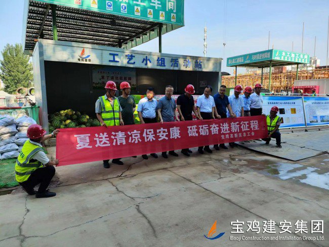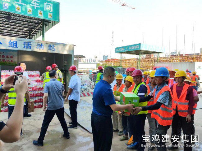 7月18日上午,寶雞高新區(qū)管委會(huì)黨工委委員、管委會(huì)副主任楊海翔,高新區(qū)總工會(huì)主席李廣強(qiáng),區(qū)教育系統(tǒng)黨委書(shū)記、教育體育局局長(zhǎng)唐宏,副局長(zhǎng)劉輝等一行領(lǐng)導(dǎo),前往建安集團(tuán)承建的寶雞高新第三幼兒園建設(shè)項(xiàng)目工地,走訪慰問(wèn)一線員工,開(kāi)展“夏送清涼”活動(dòng)。