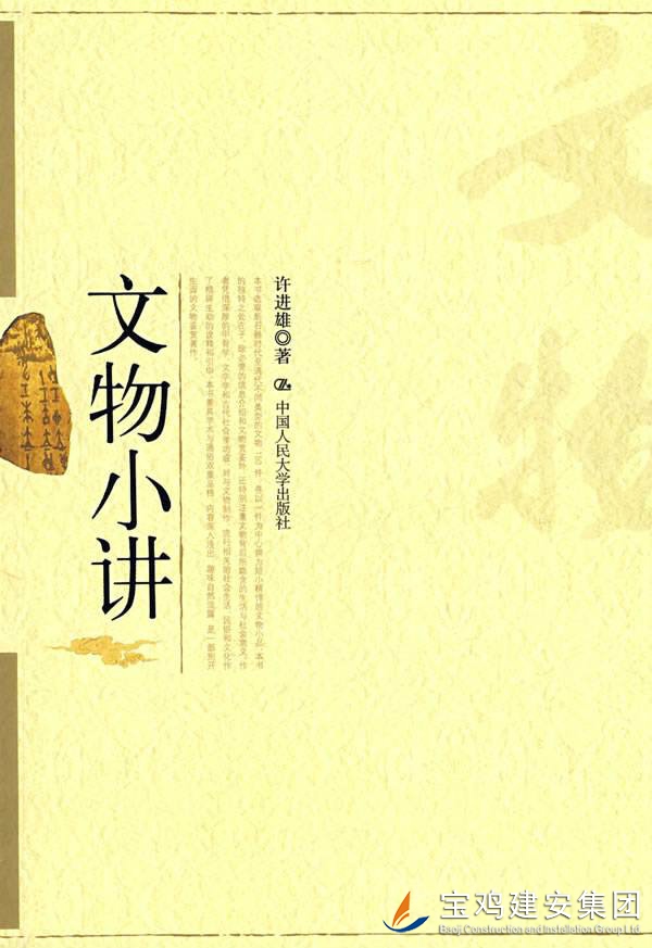 公司開展“書香企業(yè)”讀書月活動,提供了大量優(yōu)秀的各類書籍供員工閱讀,我有緣拜讀到一本臺灣著名學者許進雄先生的作品《文物小講》。 這本書以通俗易懂而不失學術(shù)的小品文方式,介紹了150件中國文物。文物歷史橫跨新石器時代至清代,文體精悍短小,詮釋精辟生動,讓人閱讀時仿佛置身博物館中游覽,不知不覺引人入勝。